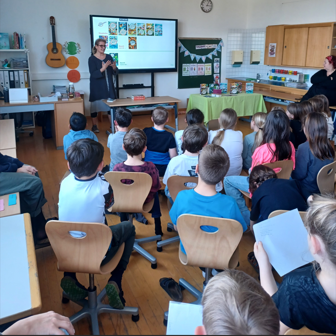 Die Kinder versammelten sich gespannt im Klassenraum und freuten sich sichtlich auf die Begegnung mit einer echten Autorin. Mit viel Ausdruck und Begeisterung zog sie die Kinder sofort in den Bann der Geschichte.